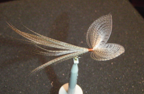 I was introduced to the Wally Wing style of winging by talented fly tier, Henk Verhaar, who appears in the video on this page. It’s an elegant, form of wing that offers translucency and many variations for the imaginative tier. As many of you must know by now, I tie most of my spinners with a peccary body and a Wally Wing. The wing traps air bubbles and filters light creating the glassy feel of a real spinner wing. You can see some completed flies HERE. Today’s entry is primarily to demonstrate the technique of splitting a duck feather (most long fibered feathers will do equally well). Just a quick note that many times while demonstrating this technique, a person will mistakenly call this style wing “a wonder wing”. Although a terrific wing, the wonder wing is made from 2 feathers as opposed to splitting a single feather. So thanks to Wally Lutz for allowing me to use his wonderful illustrations, and to Henk Verhaar, for demonstrating this wonderful technique.