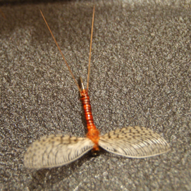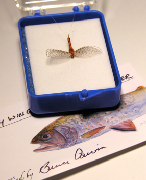 Each spinner is tied by me and will be shipped in a plastic case with a signed signature card. Each fly will vary slightly in size and color as they are tied to order.